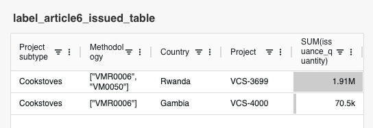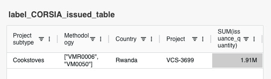 9月は、ルワンダとガンビアのクックストーブ案件に対してArticle 6ラベルが発行されています。これまでの発行実績を見ると、同ルワンダのクックストーブ案件(VCS-3699)が全体の約2割を占めており、ルワンダのクックストーブ案件全体は8割以上を占めています。この後に取り上げるCORSIAラベルも同様ですが、少数の案件が発行量の多くを占めるという特徴があります。