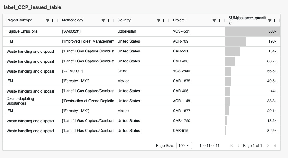CCPラベルに関しては、前月と同様に、9月は主にウズベキスタンのFugitive Emissions案件に対して発行されています。これまで、Fugitive Emissionsを中心とした非CO₂案件で多くのクレジットが発行されており、その中でもVCS-4531案件は、過去3か月間連続で最も多くのCCPラベル付きクレジットを発行しています。