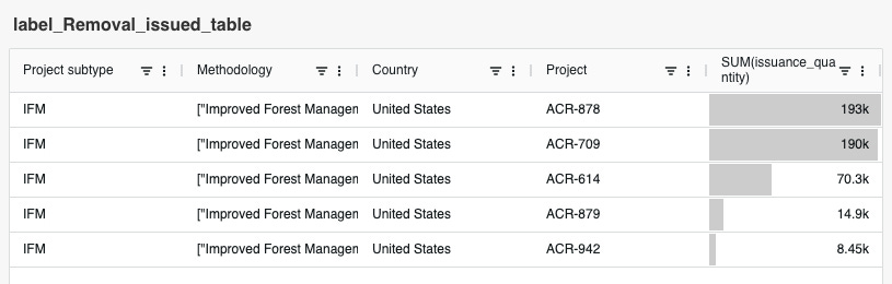 最後に、Removalラベルにつきまして、9月には米国のIFM案件5つ(全てACR)で発行がありました。これまで、Removalラベルの米国IFMプロジェクトはすべてACRに登録されており、発行されたRemovalクレジットの半数以上を占めています。