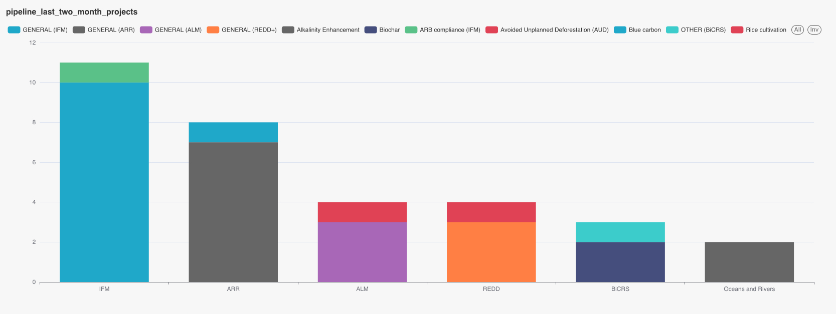 10月のパイプラインには、ガボンとブラジルのREDD案件、モンゴリア、アルゼンチンとインドのARR案件などが含まれています。レジストリでの情報共有にはタイムラグが生じることがあるため、9月のパイプラインは前月のニュースレターが記載時点からさらに8案件が追加され、カザフスタンのALM案件、 インドネシアと米国のIFM案件、マラウィのARR・REDD案件、マダガスカルやケニアのARR案件などが追加されました。