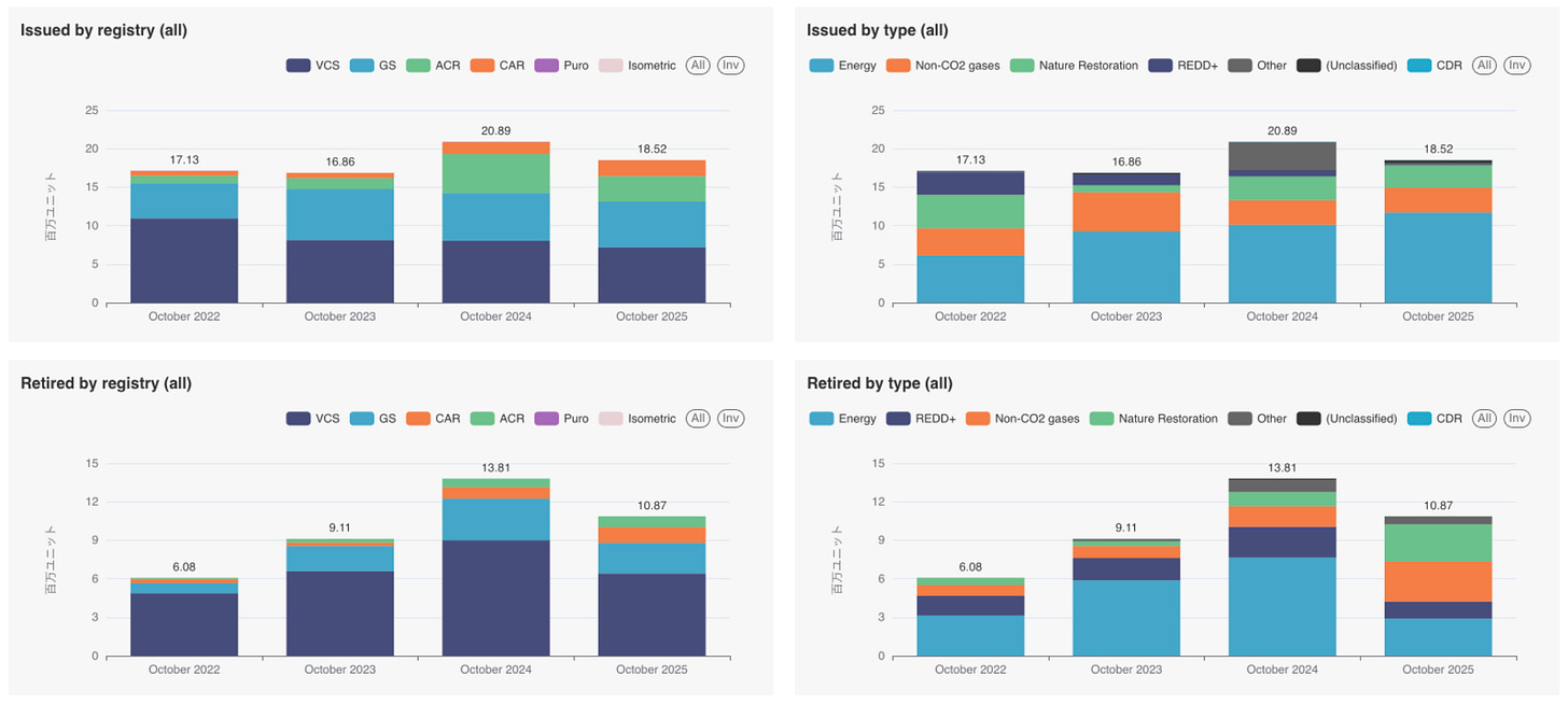 今月のニュースレターでは、クレジットの発行・償却実績は、2025年10月のデータを扱います。
