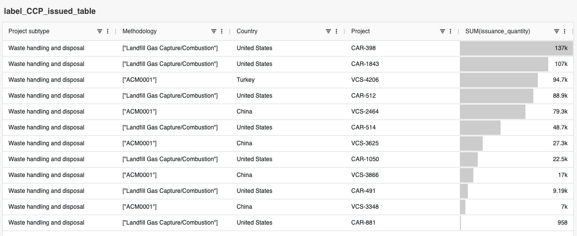 CCPラベルに関しては、10月は米国、中国、トルコの廃棄物処理案件のみに対して発行されています。累計では、同プロジェクトタイプからの発行量が 約2割 を占めています。また、前月に最も多くの発行量を記録したウズベキスタンのFugitive Emissions案件については、ニュースレターが記載時点で、10月は4ヶ月ぶりにCCPラベル付きクレジットの発行がありませんでした。