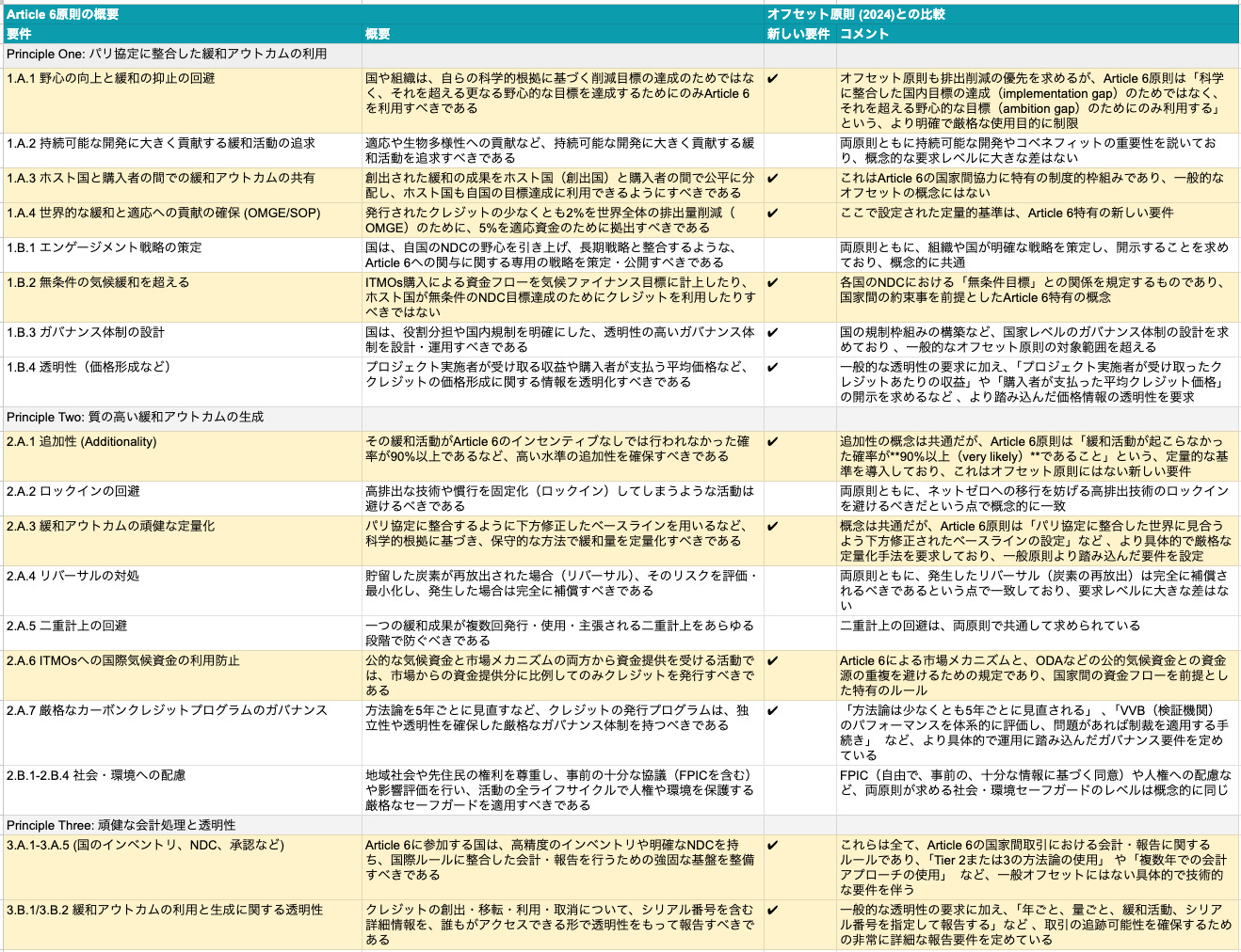それぞれの原則にさらに細かい要件が設定されています。以下の表にその概要と、オフセット原則との関連についてまとめました。