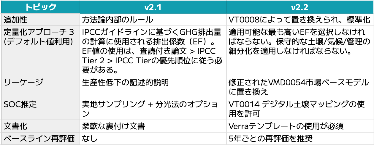 表1: VM0042 v2.1とv2.2の変更点の比較